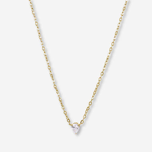 Elsa halsband från astrid&agnes.young har en liten droppformad berlock av en cubic zirkonia framtill. En tidlös detalj i miniformat som passar perfekt för barn i åldrarna 5-12 år. Halsbandet är tillverkat av kirurgiskt rostfritt stål med 14k guldplätering, vilket gör den tålig för både lek och vardagsanvändning utan att tappa sin färg eller lyster. En fin gåva som håller över tid. Alla halsband är 36 cm och har en förlängningskedja på 6 cm. Smycket levereras i en ask.