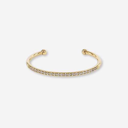 Alma Bangle från astrid&agnes.young är en nätt armring dekorerad med gnistrande kubisk zirkoner längs med hela framsidan. Armringen är justerbar till mindre eller större storlek - bara tryck ihop eller dra isär armringen för att anpassa storleken. Armringen passar barn i åldrarna 5-12 år, men eftersom smycket är anpassningsbart kan även yngre- och äldre bära det. Armringen är tillverkat av allergivänligt kirurgiskt rostfritt stål med 14k guldplätering, vilket gör den tålig för både lek och vardagsanvändning utan att tappa sin färg eller lyster. En fin gåva som håller över tid. Smycket levereras i en ask.