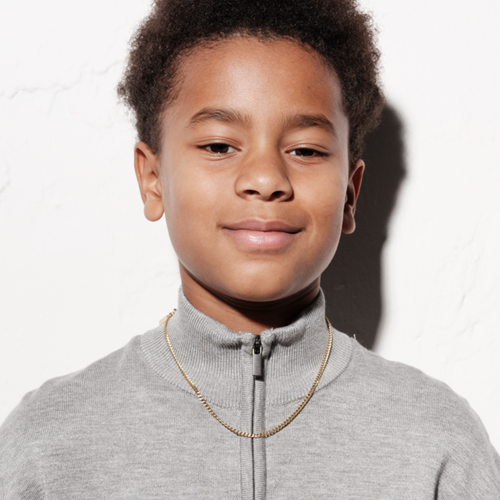 August halsband från AROCK.young är en klassisk pansarlänk med matt finish, tillverkat av kirurgiskt rostfritt stål med en PVD-plätering av 14 karat guld - ett allergivänligt material som tål både lek och vardaglig användning. Halsbandet har ett lås med karbinhake och en förlängningskedja på 6 cm. Alla smycken levereras i en fin ask, redo att ge bort som gåva.