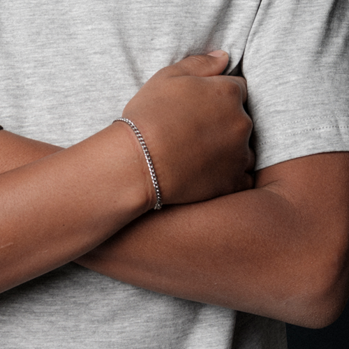 August armband från AROCK.young är en klassisk pansarlänk med matt finish, tillverkat av kirurgiskt rostfritt stål - ett allergivänligt material som tål både lek och vardaglig användning. Armbandet har ett lås med karbinhake och en förlängningskedja på 4 cm. Alla smycken levereras i en fin ask, redo att ge bort som gåva.