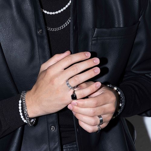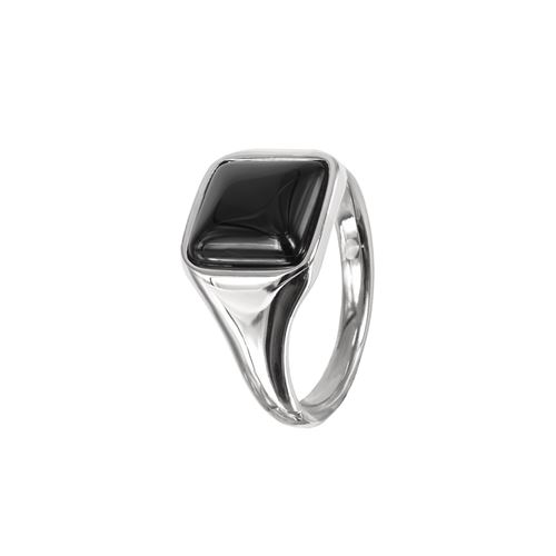 Klackring i rostfritt stål med en svart ädelsten av onyx.