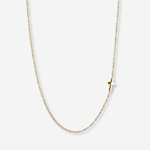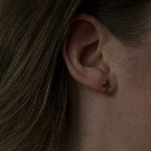 Cross Plain studs är ett par nätta örhängen i formen av ett litet kors. Den minimalistiska designen gör dessa örhängen till ett självklart val för vardagen, samtidigt som de enkelt kan stylas till mer uppklädda tillfällen och kombineras med andra örhängen. Tillverkade av det allergivänliga materialet kirurgiskt rostfritt stål med en guldplätering av 14 karat, kan även de som är känsliga bära dessa örhängen. Detta smycke är en kombination av modern design och klassisk symbolik - matcha med halsbandet ur samma serie för en komplett look eller ett vackert gåvoset.