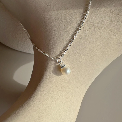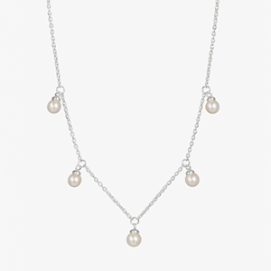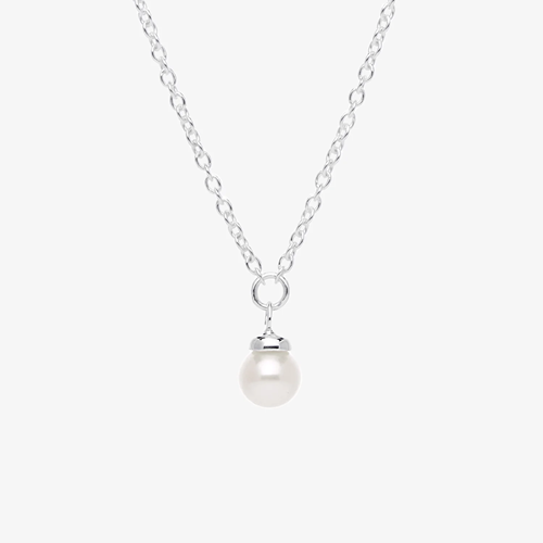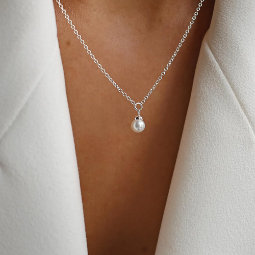 Ett kort silverhalsband på tunn kedja med en skimrande vit sötvattenspärla. Smycket har tre justerbara längder, pärlan kan ligga vacker vid halsgropen eller längre beroende på bärarens val av stil. Pärlhalsbandet är för evigt klassisk, tidlös och elegant.