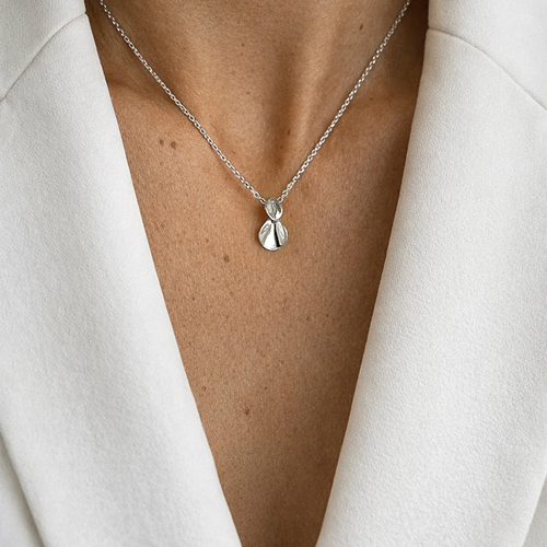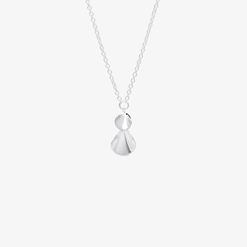 Ett vackert kort silverhalsband. Smycket består av två organiska former i olika storlekar, ett mindre och ett större, som överlappar varandra. Elegant och feminint smycke inspirerat av blomblad.