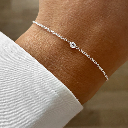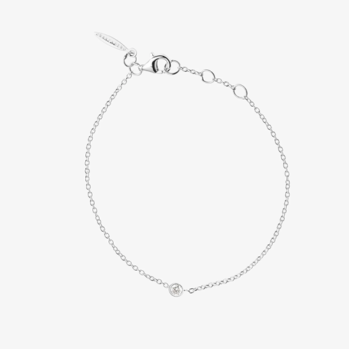 Silverarmband från Drakenberg Sjölin med en vit topas infattad i återvunnet silver, fäst på en nätt kedja. Ett minimalistiskt och tidlöst armband i nordisk design, perfekt för både vardag och speciella tillfällen.