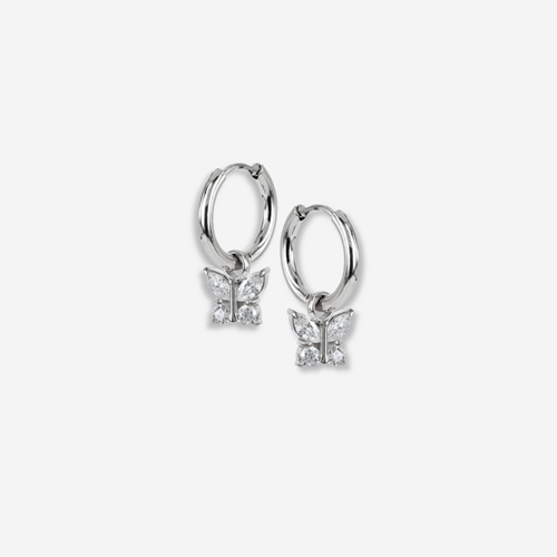 Juni Hoops från astrid&agnes.young är kreoler på 14 mm med hängen i form av fjärilar, dekorerade med cubic zirkonia. Dessa örhängen är perfekta för barn från 5 år och uppåt och är tillverkade av kirurgiskt rostfritt stål - ett allergivänligt material som tål både lek och vardagsanvändning utan att tappa färg eller lyster. Ett tips är att ta av hänget och bära endast kreolerna. Örhängena kommer i en ask.