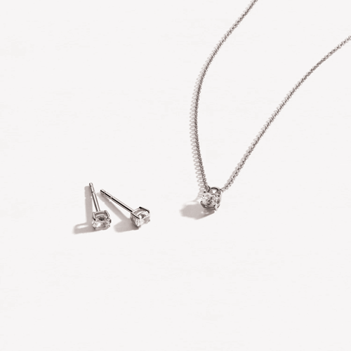 Örhängen av rhodiumpläterat 925 sterlingsilver med polerad yta och handplacerade, fasetterade vita zirkoner.