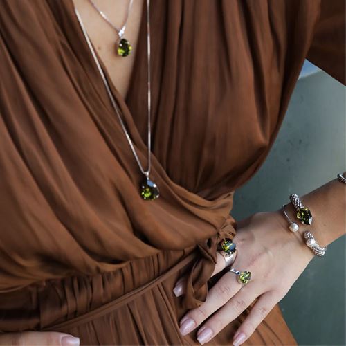 Alla smycken från Caroline Svedbom är gjorda av mässing med 18k guld- eller rhodiumplätering med selektivt utvalda kristaller av högsta möjliga kvalitet. Alla smycken är godkända enligt EU-standard som nickelsäkra / nickelgodkända, dvs att nickelhalten som fälls ut är under det tillåtna gränsvärdet (0,05 %). Nästan all metall innehåller någon del nickel även om det är ytterst små mängder. Stiften på örhängena som vi använder oss av är gjorda av 925 silver. Alla material som används vid tillverkningen är kontinuerligt testade för högsta kvalitet.