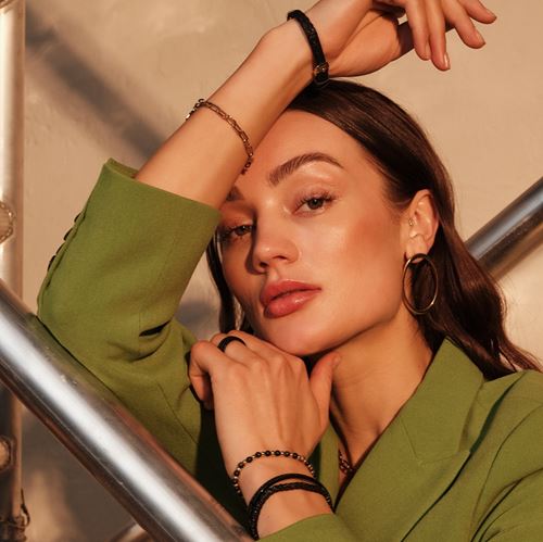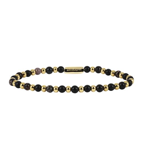 Kularmband av svarta stenar och detaljer i 14k guldpläterat stål.
