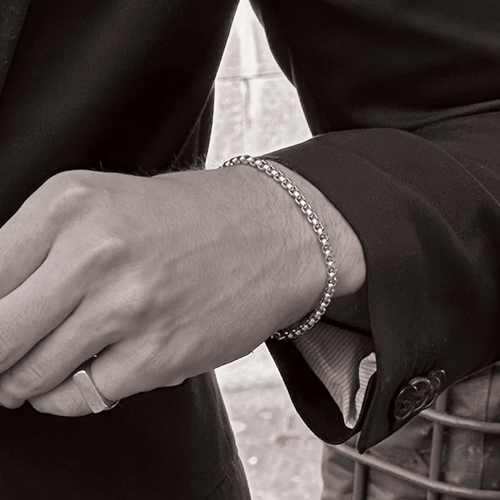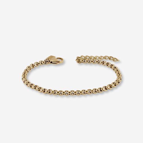 Will armband är tillverkat av kirurgiskt rostfritt stål med en PVD-plätering av 14k guld, vilket gör detta armband tåligt och kan bäras utan oro för missfärgning eller slitage. Armbandet har en polerad yta. Levereras i en ask.