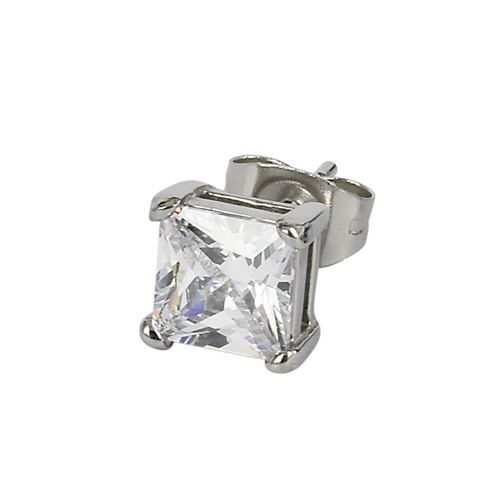 Fyrkantigt örhänge på stift i blankt stål med en vacker, klar kristall.