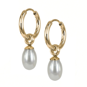 Pärlörhängen med äkta sötvattenspärla på stift i 14k guldpläterat stål.