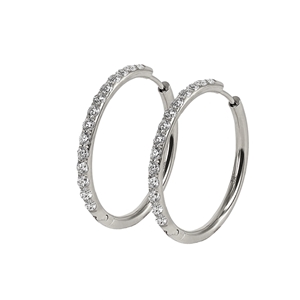 Blanka creoler i stål med infattade kristaller.