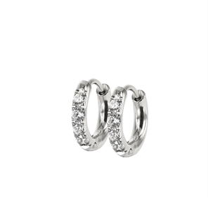 Blanka creoler i stål med infattade kristaller.