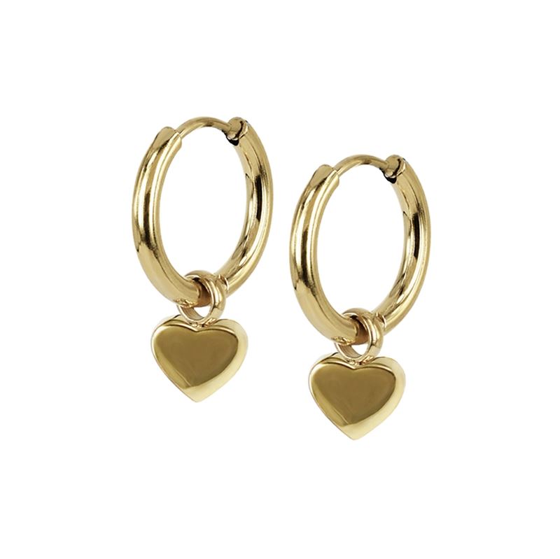 Blanka creoler i 14k guldpläterat stål med hängande stilrent litet hjärta.
