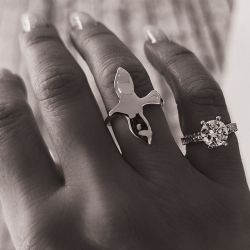 En justerbar ring i form av Emma Israelssons duva i ny exklusiv utgåva för att fira deras 10-årsjubileum. Det nya ringen behåller samma omtyckta form som originalet, men är gjort med den karaktäristiska organiska, ojämna yta som reflekterar ljuset vackert och lyfter fram detaljerna.