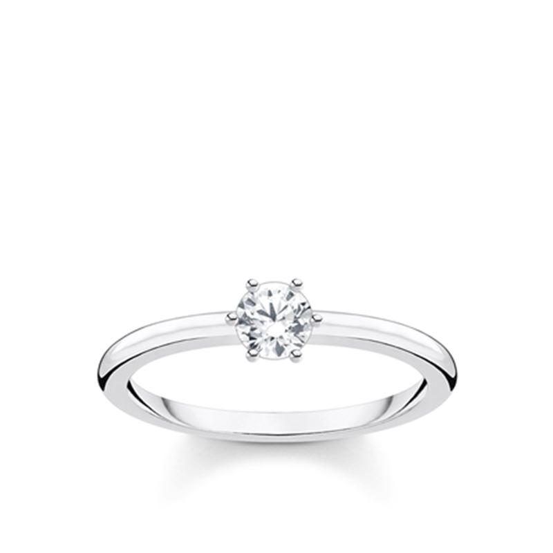 Som nobel förlovningsring, förtrollande gåva till bästa väninnan eller som gnistrande accessoar vid högtidliga tillfällen: Enjoy the best moments! Den eleganta solitärringen ur Charming-kollektionen från THOMAS SABO är som gjord för att i det avgörande ögonblicket fokusera på den som bär ringen. Smycket är tillverkat i 925 sterlingsilver och kan bäras separat på fingret eller tillsammans med andra ringar i individuell mismatching-look. Den strålande zirkoniastenen i mitten av ringen bildar höjdpunkten på smycket: Den kommer särskilt bra till sin rätt genom den fina klofattningen.